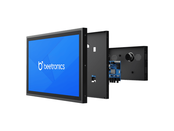 Los monitores y pantallas táctiles metálicos de Beetronics se pueden integrar con total fluidez en un bastidor de 19 pulgadas en combinación con el kit de montaje en bastidor de 19 pulgadas RMK2.